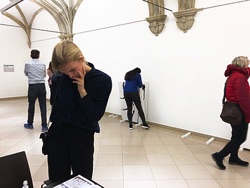 Unsigned Untitled Undated, Besucher*innen bei der Auswahl ihrer Leinwand, IKOB Museum für Zeitgenössische Kunst