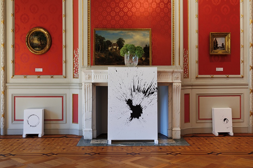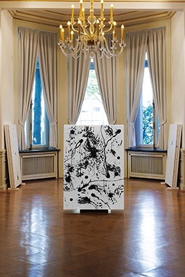 Unsigned Untitled Undated ist das Angebot an die Besucher, ein unsigniertes Werk aus der Serie Inks kostenlos mitzunehmen. Interessenten können die Leinwand alternativ vom Künstler sig-