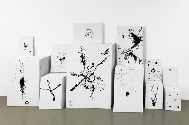 Unsigned Untitled Undated ist das Angebot an jedermann, ein unsigniertes Werk aus der Serie Inks kostenlos mitzunehmen. Interessenten können die Leinwand alternativ vom Künstler signieren und mit Titel und Datum versehen lassen und sie dann zum regulären Preis käuflich erwerben.